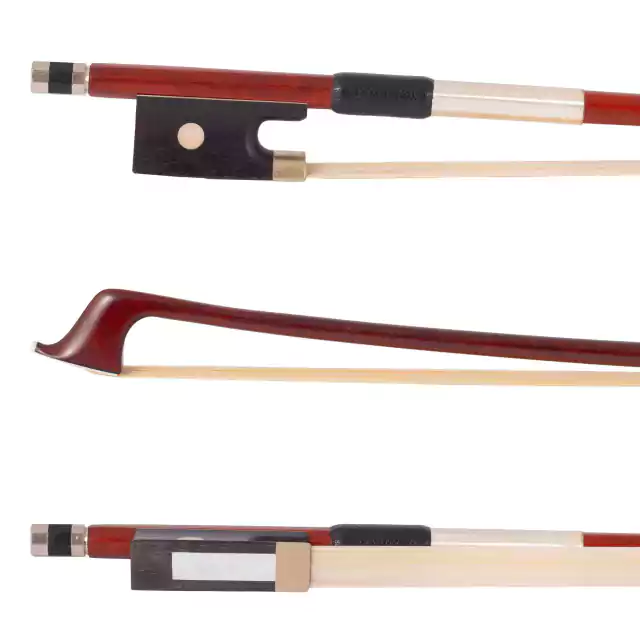 Arco Di Pietro para violino feito com vareta de Maçaranduba, talão de Ébano com montagem níquel, crina natural branca de excelente qualidade. Arco de linha Intermediário avançado com ótimo equilíbrio, boa envergadura e lindo visual.