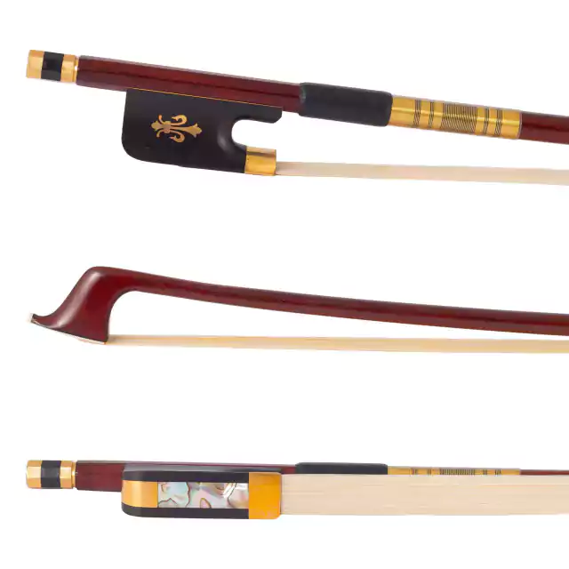Arco Di Pietro para violoncelo feito com vareta de Maçaranduba, talão de Ébano, detalhe flor de lis, crina natural branca de excelente qualidade. Arco de linha Intermédiário avançado com ótimo equilíbrio, boa envergadura e lindo visual.