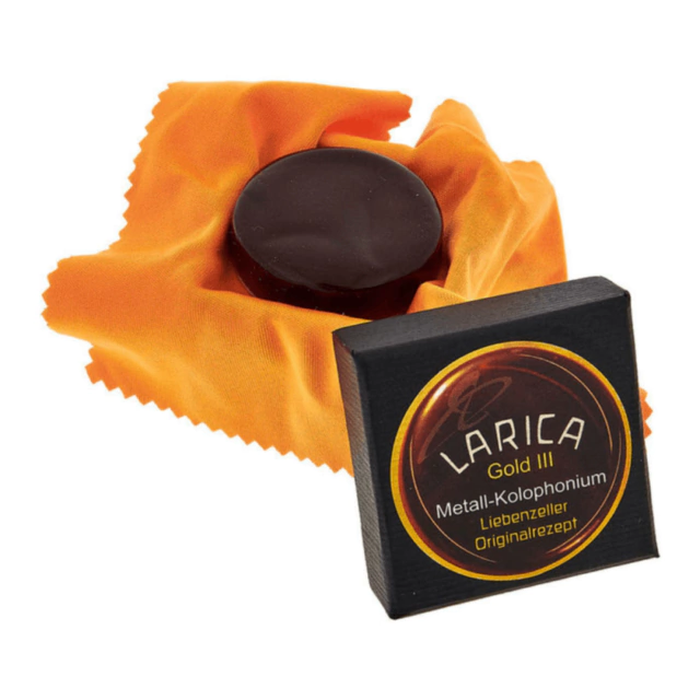 O breu LARICA Gold dá ao instrumento um som amplo e radiante. A resposta boa e uniforme do arco, é um breu insensível as mudanças de temperatura e umidade, auxilia na produção musical em uma ampla variedade de situações. O ruído de fundo é reduzido ao mínimo. Quem sofre de alergia aprecia o baixo nível de formação de poeira.
