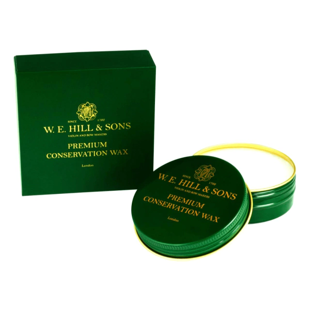 Cera de Conservação Hill & Sons Premium. Recém formulada especificamente para ajudar a limpar, cuidar e conservar seus instrumentos de cordas finas e arcos, a Cera de Conservação WEHill & Sons é feita usando uma mistura única de ceras micro cristalinas e óleos cítricos.