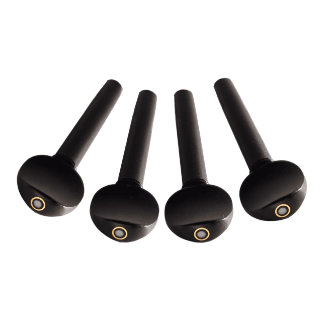 Jogo de cravelhas Di Pietro para violino 4/4, feito em Ébano Indiano, no estilo Swiss com detalhes olho Paris.