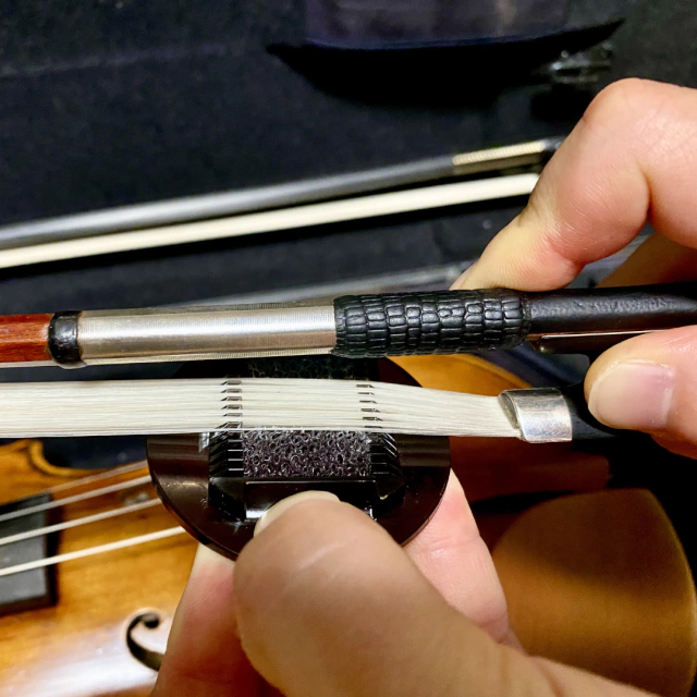 1. Fixa completamente as partículas de resina entre os fios do cabelo do arco após a primeira aplicação em um novo cabelo
