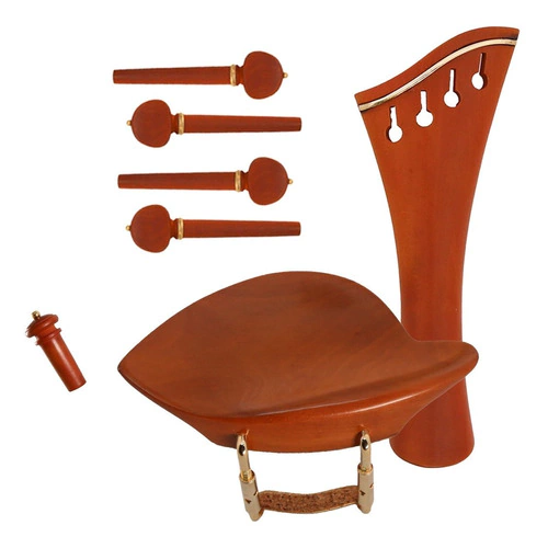 Kit de montagem para Violino 4/4, feito em Boxwood Indiano com detalhes em dourado, contendo 4 cravelhas Swiss, 1 estandarte Harp, 1 Queixeira Dresden e 1 botão.