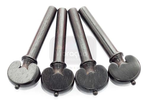 Conjunto Violino 4/4, feito em Ébano Indiano com detalhes em ébano, contendo 4 cravelhas Heart, 1 estandarte Hill, 1 Queixeira Guarneri e 1 botão.