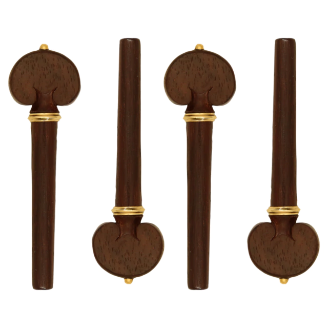 Kit de montagem Violino 4/4, feito em Jacarandá Indiano (Rosewood) com detalhes em dourado, contendo 4 cravelhas Heart, 1 estandarte Hill, 1 Queixeira Guarneri e 1 botão.