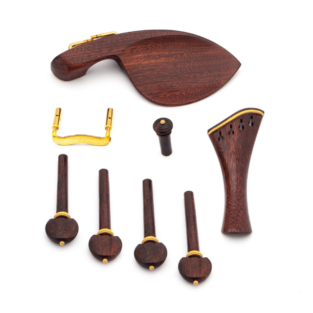 Kit Montagem Violino Tamarindo Harp Guarneri Hill BW 4/4. Conjunto Violino 4/4, feito em Tamarindo Indiano com detalhes em boxwood, contendo 4 cravelhas Hill, 1 estandarte Harp, 1 Queixeira Guarneri e 1 botão.
