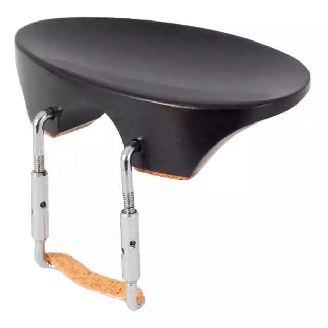 Queixeira modelo New Flesh para violino 4/4, fabricada com Ébano qualidade "A". Queixeira estilo central que se encaixa no meio do estandarte.