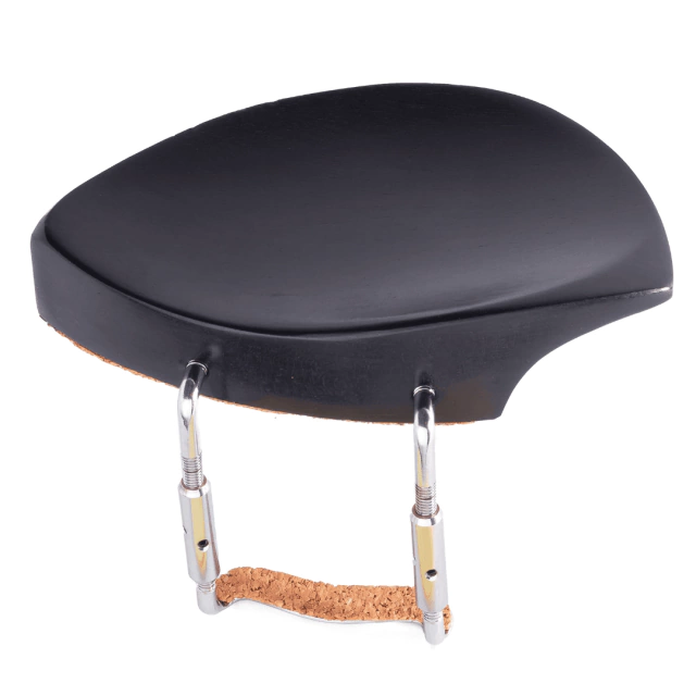Queixeira modelo Teka para violino 4/4, fabricada com Ébano Indiano qualidade "A. A queixeira é um acessório que se encaixa no extremo do corpo do violino ou da viola de arco, peça essencial para apoiar o maxilar no instrumento. É muito importante escolher a queixeira correta, que permita conforto, segurança na hora de tocar e que combine com seu instrumento.